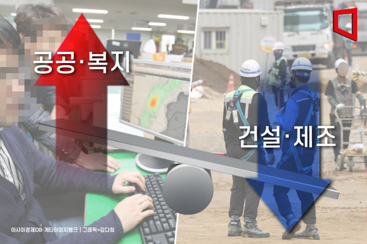 일자리 양극화가 갈수록 뚜렷해지고 있다. 공공·복지 부문 일자리가 빠르게 늘었지만 건설·제조업 일자리는 수개월째 극심한 부진에 시달리고 있다. 노인층의 고용지표는 개선되고 있지만 청년층의 경우 악화 일로를 걷고 있다. 취업자가 3개월 연속 10만명대 넘게 증가하는 양호한 기록에도 한국의 주력 산업에서 고용이 더 나빠질 수 있다는 전망도 나온다.