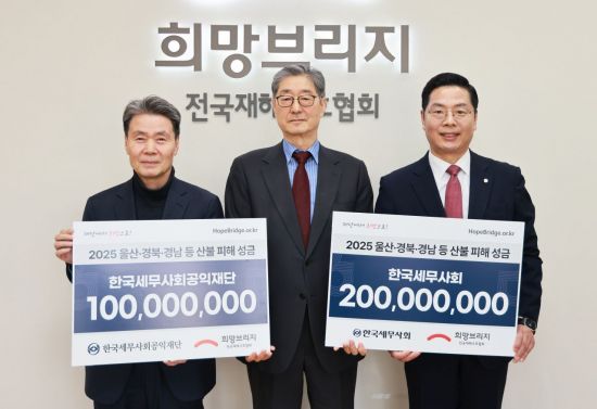 정구정 한국세무사회공익재단 이사장은 "산불로 삶의 터전을 잃은 이웃들께 깊은 위로를 전하며, 피해 지역 복구에 앞장서고 있는 희망브리지에도 진심으로 감사드린다"면서 "이번 기부가 이웃들의 일상 회복에 실질적인 도움이 되기를 바란다"고 말했다.