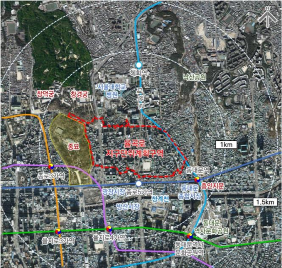 4호선 동대문역과 혜화역 사이에 위치한 율곡로 일대 지구단위계획이 17년 만에 정비된다.