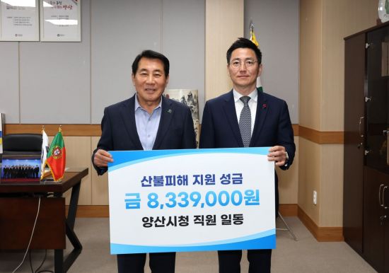경남 양산시는 17일 오후 시장 집무실에서 산불 피해 주민들을 돕기 위한 모금성금 833만 9000원을 경남사회복지공동모금회에 전달했다.