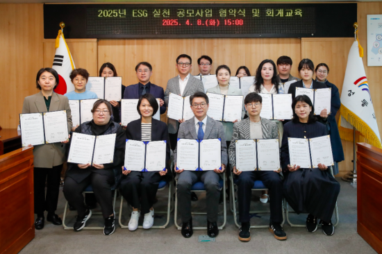 성동구(구청장 정원오)가 지난 8일 '2025년 성동형 이에스지(ESG) 실천 공모사업'에 선정된 17개 단체와 협약을 체결하고 본격적으로 이에스지(ESG) 사업을 추진한다.