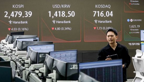 코스피 지수가 한미 정부의 관세 관련 협상과 본격적인 실적 시즌을 앞두고 보합권에 장을 시작한 21일 서울 중구 하나은행 본점 딜링룸에서 딜러들이 업무를 보고 있다. 이날 원달러 환율은 전 거래일 대비 3.3원 내린 1420원에 거래를 시작했다.