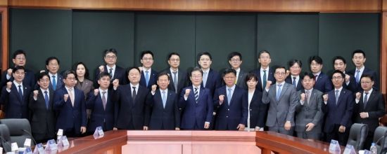 이재명 더불어민주당 대선 경선 후보가 21일 서울 여의도 금투협에서 열린 '자본시장 활성화를 위한 정책 간담회'에 참석, 간담회 시작에 앞서 참석자들과 기념촬영을 하고 있다. 이 후보는 이 자리에서 증권사 리서치센터장들을 만나 한국 증시 현황 및 평가 브리핑을 듣고 시장 선진화 방안에 대한 의견을 교환 했다.