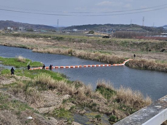 총사업비 5000만원이 투입되는 이번 사업은 미천, 남대천, 광산천, 안평천, 신평천 등 5개 하천의 8개 지점에 설치된다. 오탁방지막은 오는 4월 25일까지 총 320m 규모로 설치될 예정이다. 특히 남대천 분토교 구간은 하천 폭이 넓고 유량이 많아 우선적으로 설치가 완료됐다.