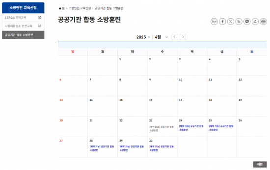 학교 등 공공기관은 '화재의 예방 및 안전관리에 관한 법률'(제37조 및 제39조)에 따라 연 1회 소방서와 합동으로 소방 훈련을 실시해야 한다. 그러나 학사 일정 등을 고려해 소방 훈련을 신청하다 보니 훈련 일정 선정과 조정 등에 어려움이 있었다.