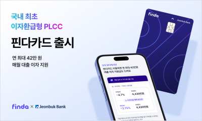 핀테크 기업 핀다는 전북은행과 손잡고 매달 대출 이자를 환급하는 상업자 표시 신용카드(PLCC) '핀다 전북은행 카드'를 출시했다고 24일 밝혔다.