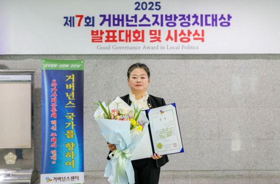 광주 동구의회 문선화 의원이 최근 '2025 거버넌스 지방정치대상' 시상식에서 공동체역량 증대 분야 우수상을 받았다고 24일 밝혔다.