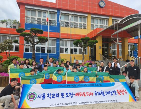 금반초 전교생 14명은 이날 출정식과 에티오피아 국기 게양 행사를 시작으로 에티오피아에 대한 탐구, 체험활동을 비롯해 에티오피아 현지를 직접 탐방하는 8개월간의 대장정에 나선다.