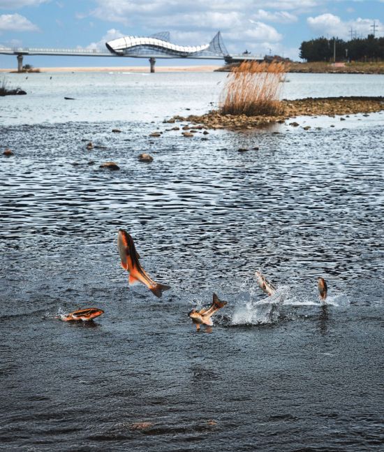 경북 울진군 근남면 수산리 울진은어다리에서 황어가 산란을 위해 상류로 올라가고 있다.