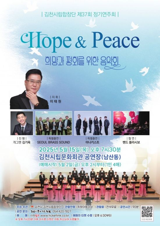 김천시는 오는 5월 15일 오후 7시 30분, 시립문화회관에서 시립합창단 제37회 정기연주회 '세대공감, 희망을 노래하다' 를 개최한다고 25일 밝혔다.