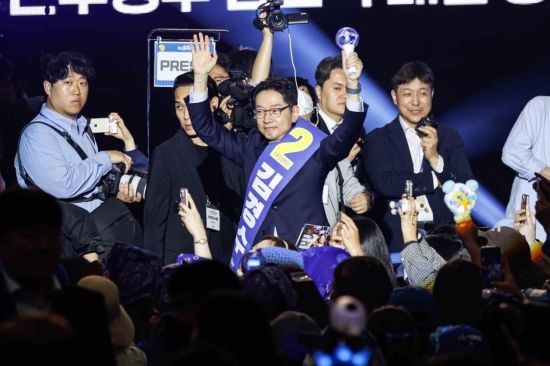 김경수 더불어민주당 대통령경선 후보가 27일 경기 고양시 킨텍스에서 열린 '더불어민주당 제21대 대통령선거 후보자 선출 위한 수도권, 강원, 제주 합동연설회'에 참석해 당원들에게 인사 하고 있다.