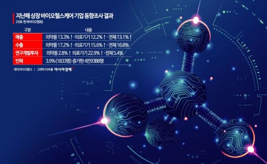 한국바이오협회는 "의약품분야 대기업의 매출 증대(55.3%) 및 중소기업의 지속적인 매출 성장(의약품 29.1%·의료기기 28.3%)이 영향을 미쳤다"고 평가했다.