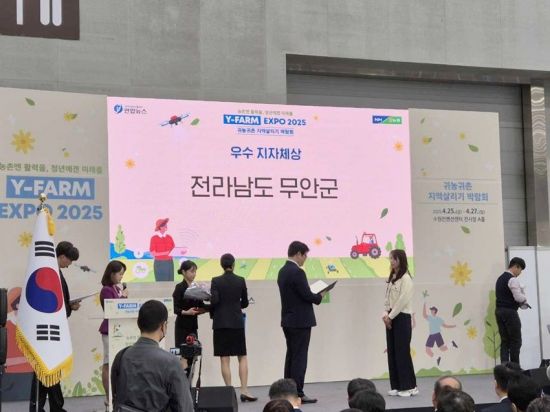 전남 무안군(군수 김산)이 지난 25~27일 사흘간 수원컨벤션센터에서 열린 'Y-Farm Expo 2025 귀농·귀촌 지역 살리기 박람회'에 참가해 귀농·귀촌 우수지자체 농촌진흥청장상을 받는 영예를 안았다.