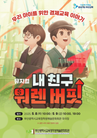 부산시교육청학생예술문화회관(관장 이해선)은 오는 8일과 9일 3회에 걸쳐 학생예술문화회관 대극장에서 초·중학생과 교직원 등 2400여명을 대상으로 뮤지컬 '내 친구 워렌버핏'공연을 개최한다.