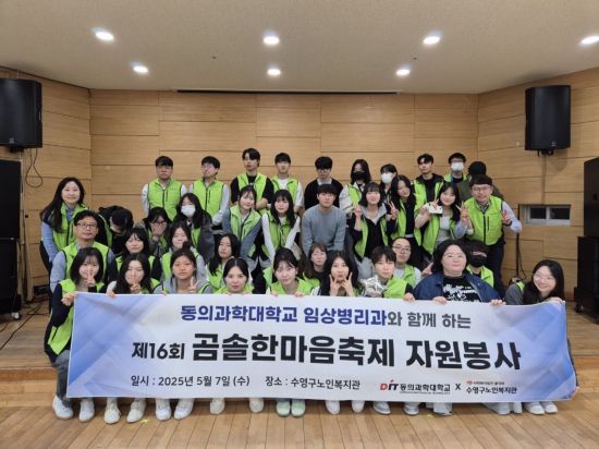 동의과학대학교(총장 김영도) 임상병리과(학과장 김혜란) 1학년 재학생들이 지난 7일 수영구노인복지관에서 열린 제16회 곰솔한마음축제 '희희낙락: 만사효(孝)통' 행사에 자원봉사자로 참여해 지역 어르신들을 위한 뜻깊은 시간을 함께했다.