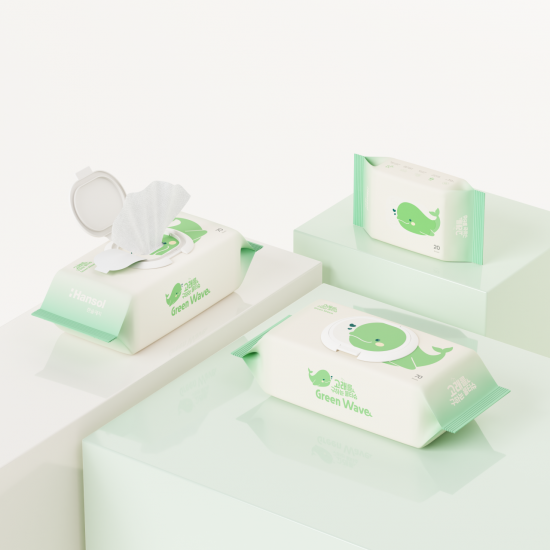 그린웨이브는 기존보다 더욱 도톰해진 70gsm(Gram per Square Meter·물티슈 원단의 무게) 엠보 원단을 적용해 한 장으로도 우수한 사용감을 제공한다.