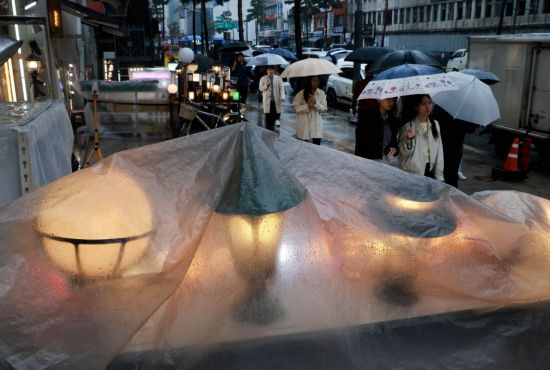 비가 와도 밖에 불을 켜두는 이유는 이곳이 조명가게이기 때문이다. 어두울수록 빛은 보여주는 것이 많은 법이다. (서울 을지로)