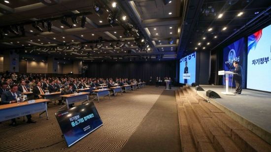 김기문 중소기업중앙회장이 12일 서울 여의도 중소기업중앙회에서 열린 '차기정부 중소기업 정책방향 대토론회'에 참석해 개회사 하고 있다.