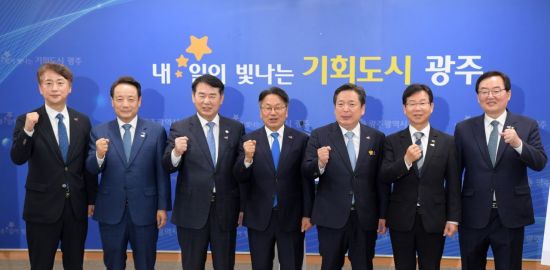 광주시는 12일 오전 시청 브리핑룸에서 제21대 대통령 선거를 앞두고 시민들의 투표 참여를 독려하기 위한 공동 기자회견을 열었다. 이날 기자회견에는 강기정 시장을 비롯해 이정선 시교육감, 임택 동구청장, 김이강 서구청장, 김병내 남구청장, 문인 북구청장, 박병규 광산구청장이 참석했다.