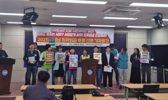 본부는 12일 경남도청 프레스센터에서 2025년 경남 최저임금 투쟁 선포 기자회견을 열고 이같이 말했다.