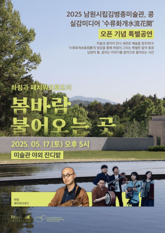 미술관 관계자는 "콘서트와 함께 콩 미디어전시실 '수류화개(水流花開)'작품과 더불어 김병종미술관 특별 기획전시 '춘향의 시간'(춘향재 95년의 역사, 기록으로 되살리다)도 동시에 즐겨 주시길 바란다"며 "남원에서의 특별한 추억으로 올해 마지막 봄의 향연을 꼭 만끽하고 돌아가시길 바란다"고 전했다.