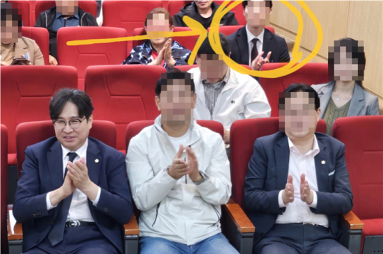 또 지난 1월에 진행된 국민의힘 천안을 당협 신년 행사와 지난해 10월 열린 국민의힘 천안을 당협 청년봉사단 발대식에도 A씨와 함께 참석했다.