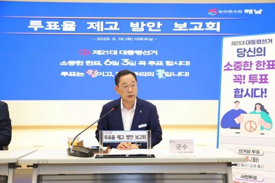 해남군은 대선 일정이 확정된 지난달부터 선제적으로 선거 업무 추진에 돌입한 상황으로, 지난 11∼13일 선거인 명부 열람 및 이의신청, 13일 읍면 투표관리관 교육, 14∼21일 선거인 명부 누락자 등재 등의 업무를 추진할 계획이다.
