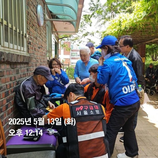 이재명 더불어민주당 대선 후보 선거 운동원이 지난 13일 동대문구 장안동 근린공원에서 선거 운동을 하는 중 갑자기 쓰러진 94세 어르신을 구한 사연이 화제가 되고 있다.