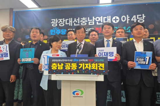 더불어민주당과 조국혁신당, 진보당, 기본소득당 충남도당이 광장대선충남연대와 함께 내달 3일 치러지는 대통령 선거에서 더불어민주당 이재명 후보 지지를 공식 선언했다.