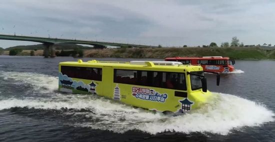 수륙양용버스는 전국에서 유일하게 운영하는 이색 교통수단이다. 백제문화단지에서 출발한 버스는 천정대 주변 도로를 달려 백마강 레저파크에 도착한 후, 그대로 강물에 진입해 수상 주행을 시작한다.