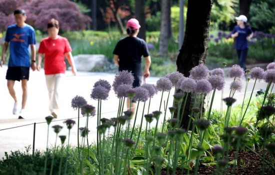 2025 서울국제정원박람회가 개막한 22일 서울 동작구 보라매공원에서 산책 나온 시민들이 정원을 둘러보고 있다. 오는 10월 20일까지 열리는 이번 박람회는 자연과 도시가 조화를 이루는 ‘서울, 그린 소울’을 주제로 진행된다.