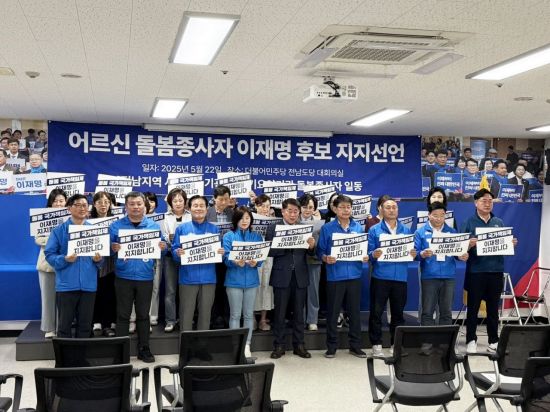 전남지역 15만명 어르신을 대상으로 직접 돌봄서비스를 제공하고 있는 돌봄 종사자들이 22일 더불어민주당 전남도당에서 이재명 대통령 후보에 대한 공식 지지를 선언했다.