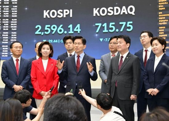 김문수 국민의힘 대선 후보가 22일 서울 여의도 한국거래소에서 열린 중앙선거대책위원회 현장 회의에서 홍보관을 둘러본 후 백브리핑을 하고 있다.