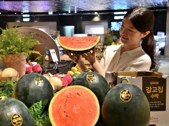롯데백화점 동래점 지하 1층 푸드에비뉴에서는 본격적인 더위를 앞두고 여름 대표 과일인 '강고집 수박'을 선보인다.