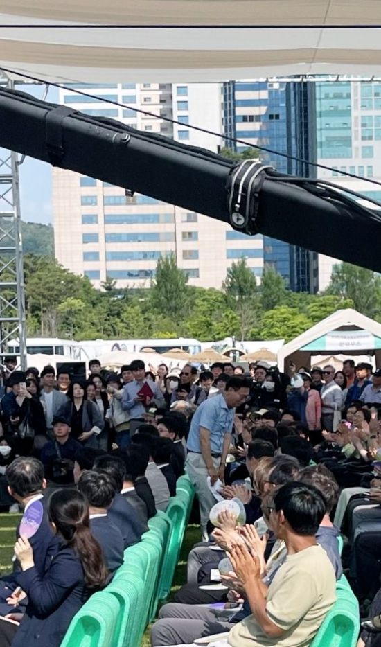 오세훈 시장 22일 오후 보라매공원에서 열린 '2025서울국제정원박람회' 개회식에서 1년간 준비를 하면서 고생한 이수연 정원도시국장 일으켜세워 인사시켜 박수 받아