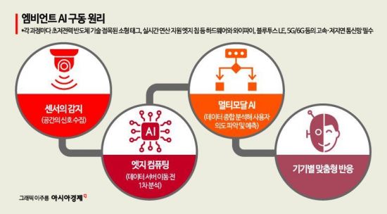 엠비언트 AI는 단순한 인공지능 서비스가 아니다. 이 기술이 작동하기 위해서는 주변 환경의 다양한 정보를 감지하고, 이를 실시간으로 분석하며, 맥락에 맞는 판단과 실행을 자동으로 수행할 수 있는 복합 기술 체계가 필요하다.