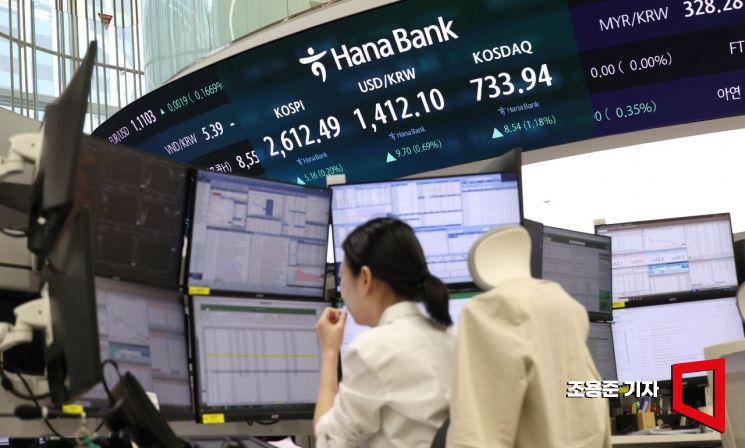 미중 상호관세 합의에 미국 뉴욕 증시가 일제히 급등 소식에도 코스피는 약보합으로 출발한 13일 서울 중구 하나은행 본점 딜링룸 현황판에 코스피와 원/달러 환율 등이 표시돼 있다. 이날 코스피는 전장보다 1.83포인트 오른 2,609.16으로 원/달러 환율은 12.6원 오른 1415.0원 장을 시작했다. 2025.5.13 조용준 기자