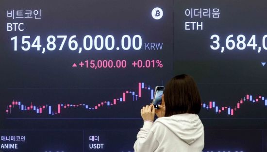 가상화폐 대장주 비트코인이 한때 11만9천900달러대까지 상승하며 고점을 높인 가운데 23일 서울 강남구 업비트 고객센터 전광판에 비트코인 시세가 표시돼 있다.