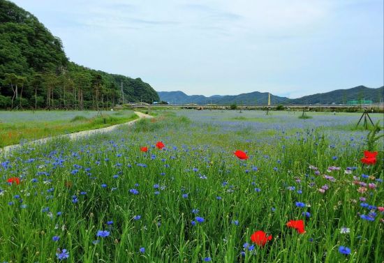 특히 수레국화는 '행복감'이라는 꽃말을 지닌 꽃으로, 바람에 살랑이는 푸른 꽃잎이 산책길을 걷는 이들에게 마음의 안정을 전해주며 색다른 힐링을 선사하고 있다.