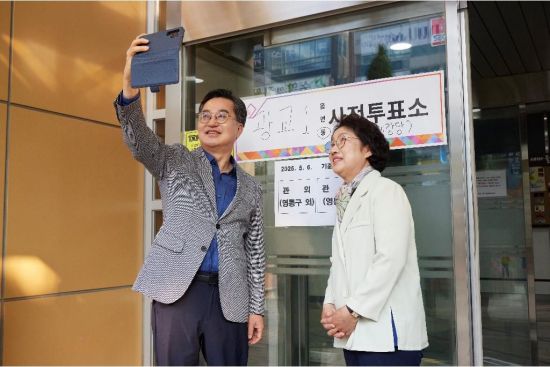 김동연 경기도지사는 제21대 대통령선거 사전투표 첫날인 29일 오전 7시께 도청사 인근 수원시 영통구 광교1동행정복지센터에 마련된 투표소에서 배우자 정우영 씨와 함께 한표를 행사했다.