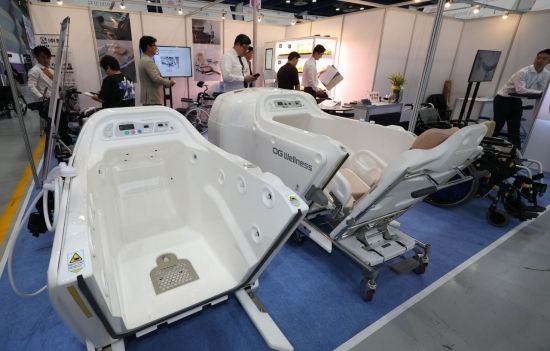 29일 서울 삼성동 코엑스에서 열린 2025 홈케어 재활 복지 전시회를 찾은 관람객이 돌봄 재활관련 제품들을 둘러보고 있다.