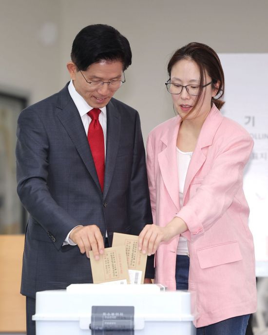 김 후보는 사전투표 첫날인 이날 오전 10시30분께 인천 계양 1동 행정복지센터 사전투표소에 딸 동주씨와 함께 도착했다. 투표소 앞에는 김 후보가 도착하기 1시간 전부터 지지자 100여명이 모였다. 김 후보가 차량에서 내리자 이들은 "김문수" "대통령"을 연호했다. 현장에는 지난해 총선 때 이 지역에서 이재명 후보와 맞붙었던 원희룡 전 국토교통부 장관과 황우여 전 국민의힘 비상대책위원장 등이 함께했다.