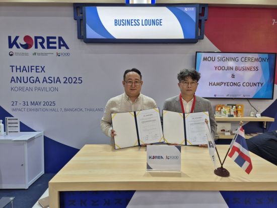 전남 함평군은 태국 방콕에서 'THAIFEX-Anuga Asia 2025' 국제 식품 박람회에 참가, 유진비즈니스와 100만달러 규모의 태국 조미김 수출 업무협약을 체결했다고 29일 밝혔다.