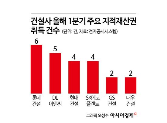 다른 건설사도 지식재산권을 통한 신기술 개발에 노력하고 있다. 1분기 확보한 주요 지식재산권 수는 DL이앤씨가 5건, 현대건설과 SK에코플랜트는 각각 4건을 기록했다. GS건설과 대우건설도 2건씩 지식재산권을 새로 늘렸다.