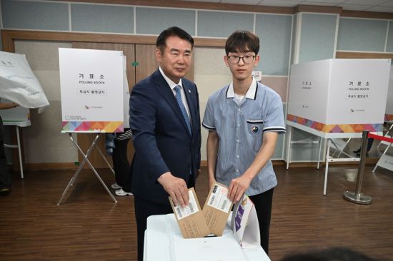 최장우 의장은 "생애 첫 투표이자 대한민국의 미래를 위한 선거라 더욱 신중하게 임했다"며 "민주 시민의 권리를 실천하는 고등의회 의장으로서 모범이 되고 싶었다"고 말했다.