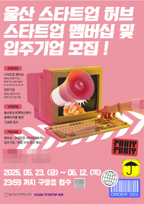 신청접수는 6월 12일까지 울산창조경제혁신센터와 울산스타트업허브 누리집에 게시된 구글폼으로 접수 가능하다.
