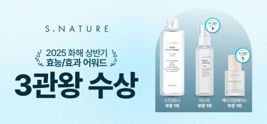 클린뷰티 브랜드 '에스네이처'가 '2025 상반기 화해 어워드'에서 3관왕을 수상했다.