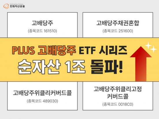 한화자산운용은 'PLUS 고배당주' 상장지수펀드(ETF) 시리즈 4종의 순자산총액 합계가 1조원을 돌파했다고 2일 밝혔다.