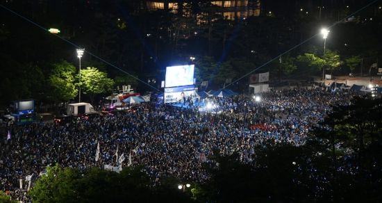 이재명 더불어민주당 대선 후보가 2일 많은 지지자들이 운집한 서울 영등포구 여의도공원에서 피날레 유세를 하고 있다.