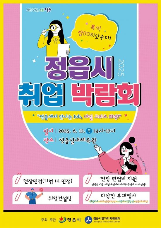 전북 정읍시 일자리지원센터는 오는 12일 오후 2~5시 정읍 실내체육관에서 '2025 정읍시 취업박람회'를 연다고 5일 밝혔다.